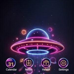 A UFO And Planets Emitting Blue Light