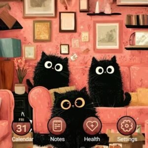 Three Black Cats In The Living Room