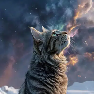 Imagine each time you unlock your phone, you’re greeted by the enchanting sight of a contemplative gray cat staring into the dreamy expanses of a cloud-filled sky. The rich, moody palette swirls harmoniously with hues of gray, soft blues, and muted purples, creating a cohesive and calming aesthetic for your Samsung theme.