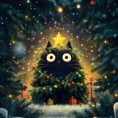 The captivating visuals of this android theme invite you into a world of warmth and wonder. The black cat, adorned with a glowing star on top of a lush tree, creates a harmonious and festive ambiance perfect for any season. The cohesive design doesn’t stop there; every icon is meticulously crafted to echo the enchanting aesthetic of the main scene, maintaining consistency across all your apps and tools.