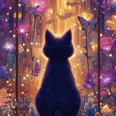 There’s something comforting about opening your phone to such a thoughtfully crafted theme. It’s not just a look; it’s a feeling—one that brings a touch of magic to your everyday routine. Whether you’re sending a quick message or exploring new apps, the ‘Black Cat Watching Glowing Flowers’ theme invites a sense of calm and delight into your digital life.