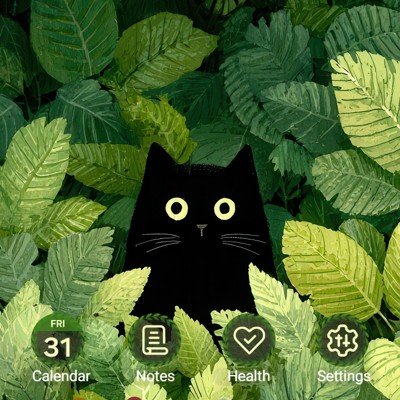 The theme’s cohesive icon design enhances this celestial setting. Each app icon is thoughtfully crafted, seamlessly blending with the fantastical planet theme. Rounded and embracing earthy textures, these icons provide a harmonious contrast to the starry backdrop, making navigation feel like an adventure through the galaxy.