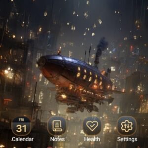 Metal Airship Over Dim City