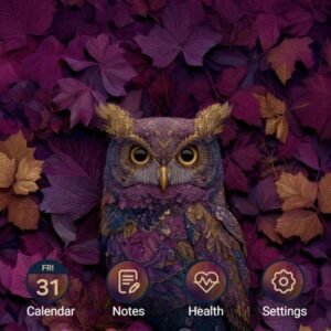 Owl Among Red Maple Leaves