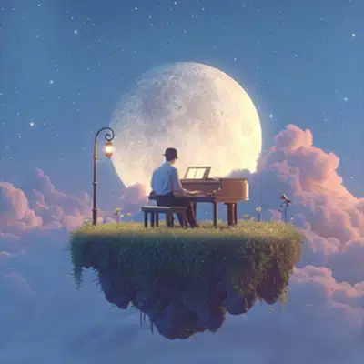 Upon installing this Samsung theme, you’re greeted with stunning visuals depicting a solitary pianist playing upon a floating cloud against a backdrop of a luminous full moon. The ethereal beauty is not just skin-deep; it flows seamlessly into the cohesive icon and keyboard designs, each thoughtfully crafted to harmonize with the enchanting theme. You’ll notice the elegant transformation of your app icons, adopting soothing, cloud-like hues that complement the dreamlike quality of the wallpaper.