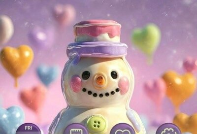 A Little Snowman Among Heart Balloons