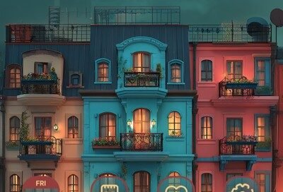Theme Shop Brand Home [LIFEWIND] European Buildings Lit In Crimson [...]