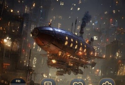 Golden Airship Above Dark City