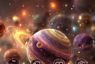 Planets With Shining Golden Rings